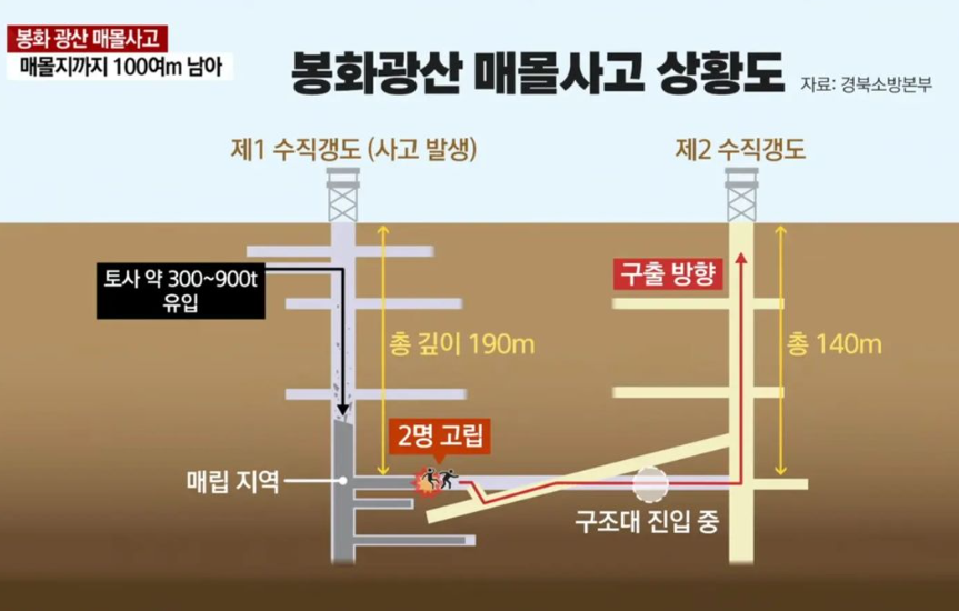 지난달 26일 오후 6시쯤 갱도 안의 흑 더미가 쏟아지면서 고립된 두 사람은 갱도 안에서 모닥불을 피우고 흐르는 물과 커피믹스로 버텨가며 구조를 기다리고 있었다고 합니다. 당시 현장관리 업체는 사고 발생 14시간 만에 119에 신고하고 고립된 인부들의 가족들에게 뒤늦게 연락을 취하며 큰 비난을 받았습니다.
